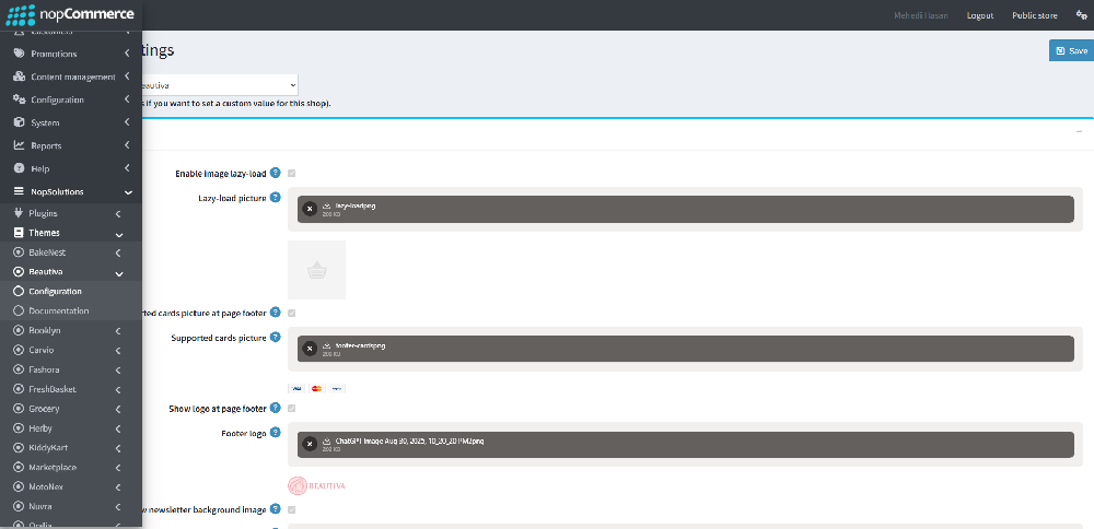 The configuration page can be accessed by going to NopSolutions → Themes → Beautiva → Configuration